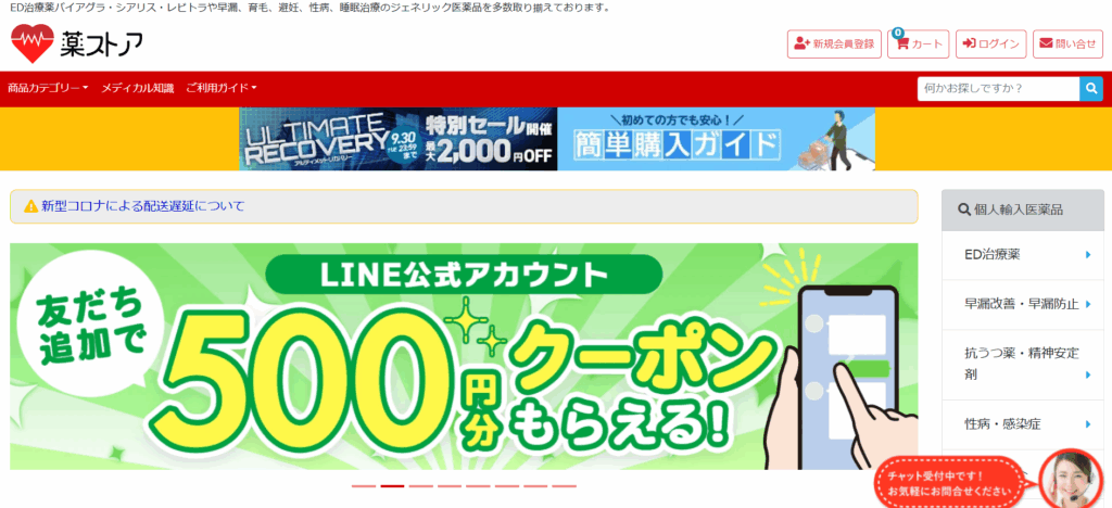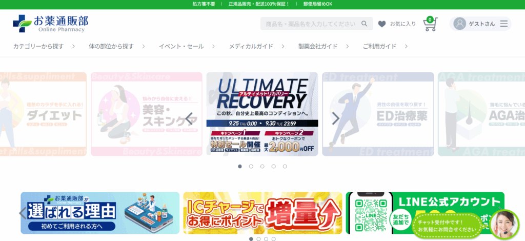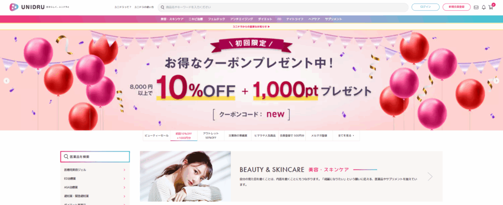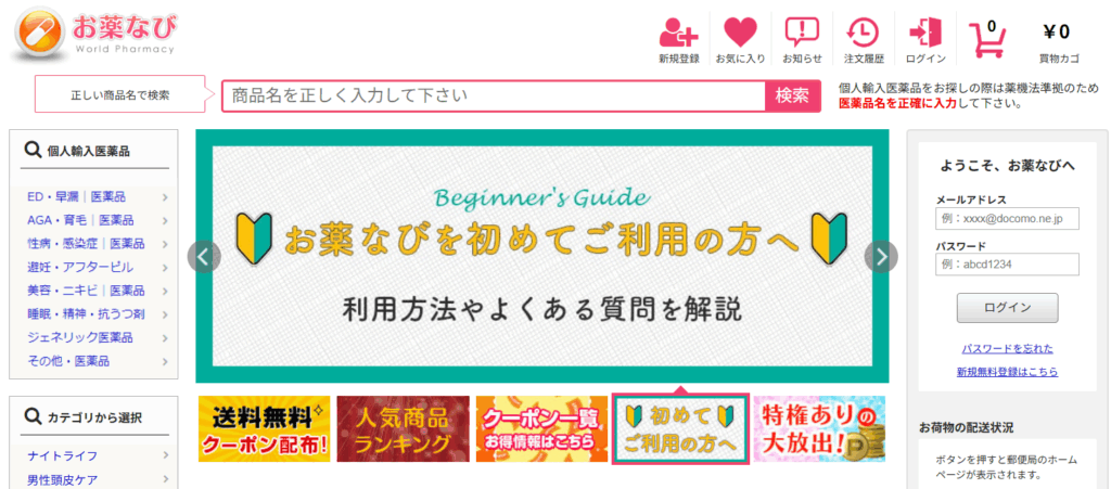 ED治療薬・避妊ピル・AGA治療薬・ダイエット薬など3,000種類以上の商品を取り扱い、45,000件を超えるレビューが寄せられるなど、多くの利用者からの支持を得ているサイトです。