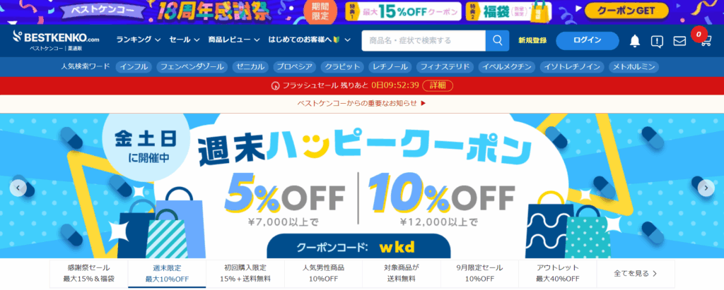 さらにベストケンコーでは、曜日ごとの割引や周年記念セールなど、定期的にクーポンが配布されています。