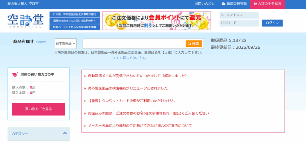 商品種類 | ナイトライフ|抗生物質|育毛|ダイエット|ピル|美容|男性ホルモン|女性ホルモン|メンタル|アレルギー|鎮痛剤|胃腸・肝臓・消化器系|禁煙治療|衛生用品など 3,000種類以上 |
