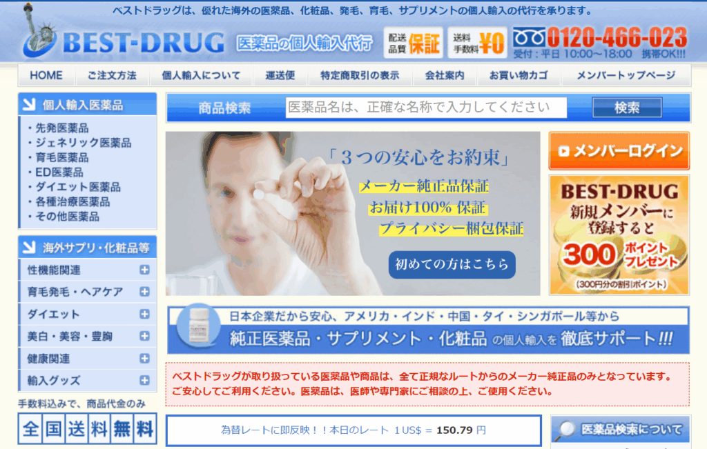 「ベストケンコー」は、イギリス領ヴァージン諸島に拠点を置く薬の個人輸入代行サイトです。